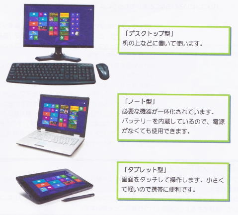 従来のデスクトップ型、ノート型にタブレット型をラインアップし、利用形態を増やし、自宅外などでも利用できるようにする。